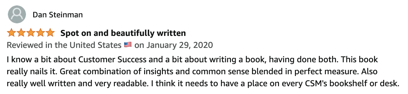 “In the Age of the Internet that ushered in this century, product was still king, and the Product Manager was the role around which everything else revolved. Today we are in the Age of the Customer, where the customer is king, and the role around which everything else must revolve is the Customer Success Manager. This is a new role, and that makes The Customer Success Professional’s Handbook a timely and welcome contribution across the globe. It is comprehensive, accurate, and incredibly well informed, making it a “must-read” for anyone performing, managing, or entering the profession.”